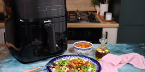 Rețetă salată Caesar de pui cu crutoane, usturoi și bacon la airfryer Breville